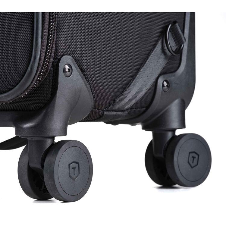 The Roadie v2 Spinner 21 Air Case from Tenba makes travel easy and stress-free for photographers, filmmakers, and content creators. It accommodates up to three mirrorless, DSLR, or cine cameras, ten lenses up to 600mm, a 16" laptop, and a portable lighting system. The durable, water-repellant 1680D ballistic nylon exterior, YKK zippers, and stress point reinforcements ensure your equipment is protected. Built to be resilient, the case frame has a polypropylene shell that withstands up to 500 lb of force. This Air Case includes a checkable laptop protection board that slips in the pocket in place of a laptop, converting the case to a unit that can be checked for air travel or shipped with confidence. The Roadie v2 Spinner 21 Air Case meets strict international carry-on regulations.