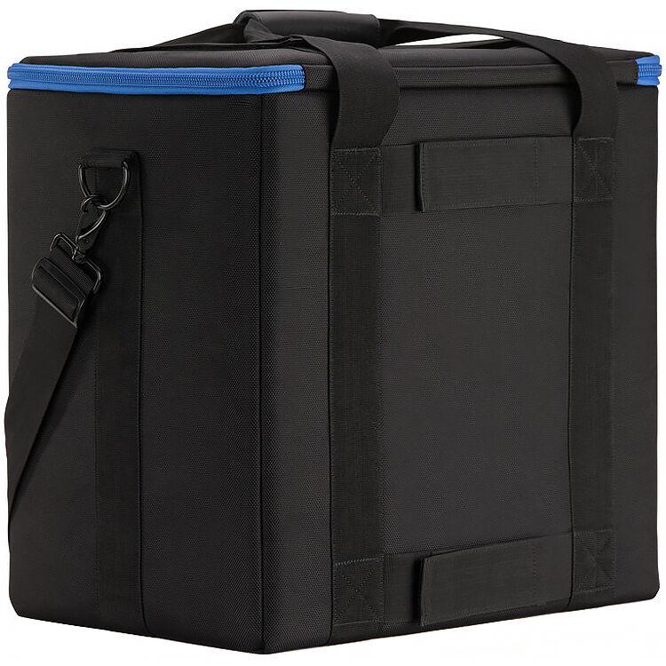 This black Tenba Transport 1x1 LED 2-Panel Case is designed to carry, ship and protect two 1x1 LED panels with or without barndoors, as well as cables and gel filters. The exterior of the case is made of water-repellent 1680 denier ballistic nylon with self-healing YKK zippered closure. Steel D-rings secure the included padded strap while adjustable straps on top of the case hold light stands or similar gear. Two straps are also sewn onto the back of the case that are meant to slip over a hand truck or rolling case and enable piggybacking if desired. Hand straps that can be joined with a touch-fastener are also part of the case construction.