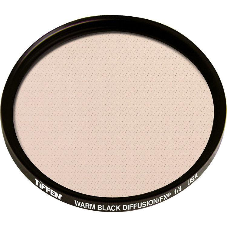 The Tiffen 62mm Warm Black Diffusion/FX 1/4 Filter diffuses strong light entering the lens and produces a glowing effect. While the resulting image appears softer and ethereal, there is little loss of clarity or detail. This filter works by diffusing the light entering the lens with small aberrations; by spreading the light more evenly, a soft glow is created rather than the sharp, well-defined image when shooting without a filter. In addition to the diffusion provided, a warming effect is also integrated into the filter helping to further balance skin tones. This filter has a 1/4 density, providing a very subtle amount of softening.