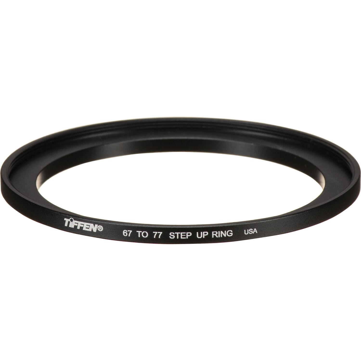 The Tiffen 67-77mm Step-Up Ring is a step-up ring permitting the use of 77mm threaded filters on a 67mm threaded lens. The ring is constructed from aluminum alloy to help prevent filter jamming.