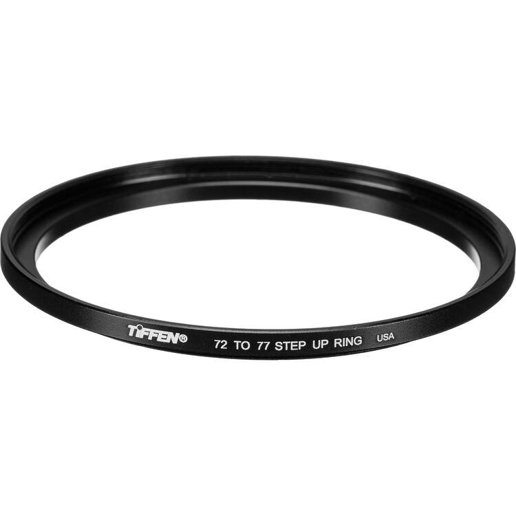 The Tiffen 72-77mm Step-Up Ring is a step-up ring permitting the use of 77mm threaded filters on a 72mm threaded lens. The ring is constructed from aluminum alloy to help prevent filter jamming.