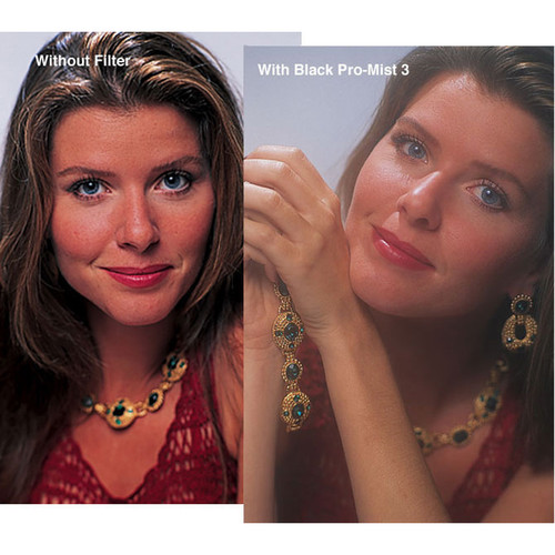 The Tiffen 77mm Black Pro-Mist 1/8 Filter helps to reduce the value of the highlights while slightly lowering the overall contrast. This filter is especially useful for smoothing out and softening facial wrinkles and other blemishes. While designed for use with movies, this filter can also be used for fashion and beauty applications. Unlike a traditional diffusion or soft focus filter, Pro-Mist filters provide little loss of detail across the image. The 1/8 density provides less contrast and highlight reduction than the 1/4, while still allowing for a soft, pastel-like quality of light.