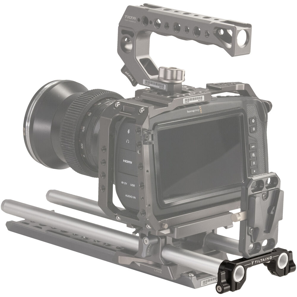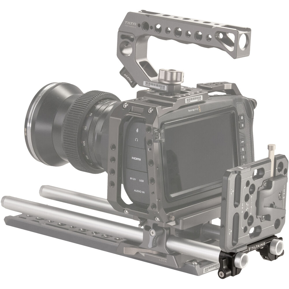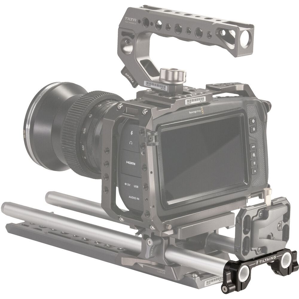 The Rod Adapter for Mini/Pocket V-Mount Battery Plate from Tilta enables you to mount your Tilta battery plate on a 15mm LWS rod system. This aluminum alloy and stainless steel adapter features thumb-lever rod fasteners.