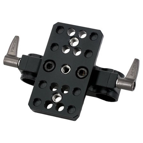 Add a 15mm rod support to your Tilta DSLR shoulder rig with this 15mm Rod Clamp. The durable aluminum clamp features two 15mm rod ports that are secured onto the rods on the rig using locking thumbscrews. The mounting plate features three 1/4"-20 mounting threads on the bottom to connect additional accessories to the rig.
