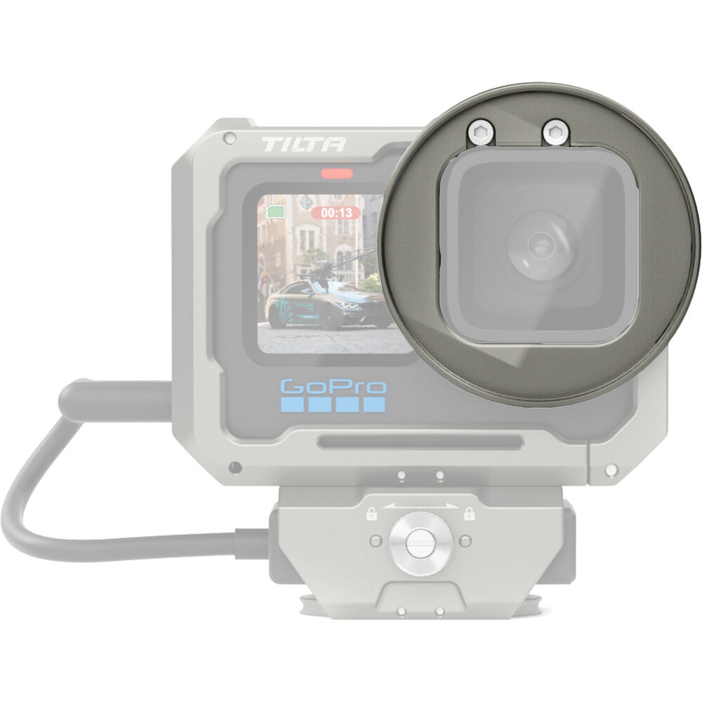 Drop a filter in front of your GoPro HERO11 lens with this titanium gray 52mm Filter Tray Adapter Ring from Tilta. This durable aluminum adapter requires the separately available Full Camera Cage for GoPro HERO11, and it installs onto the cage using two included captive screws. The adapter allows you to install a 52mm circular filter or step-up ring onto the front of your HERO11 lens.