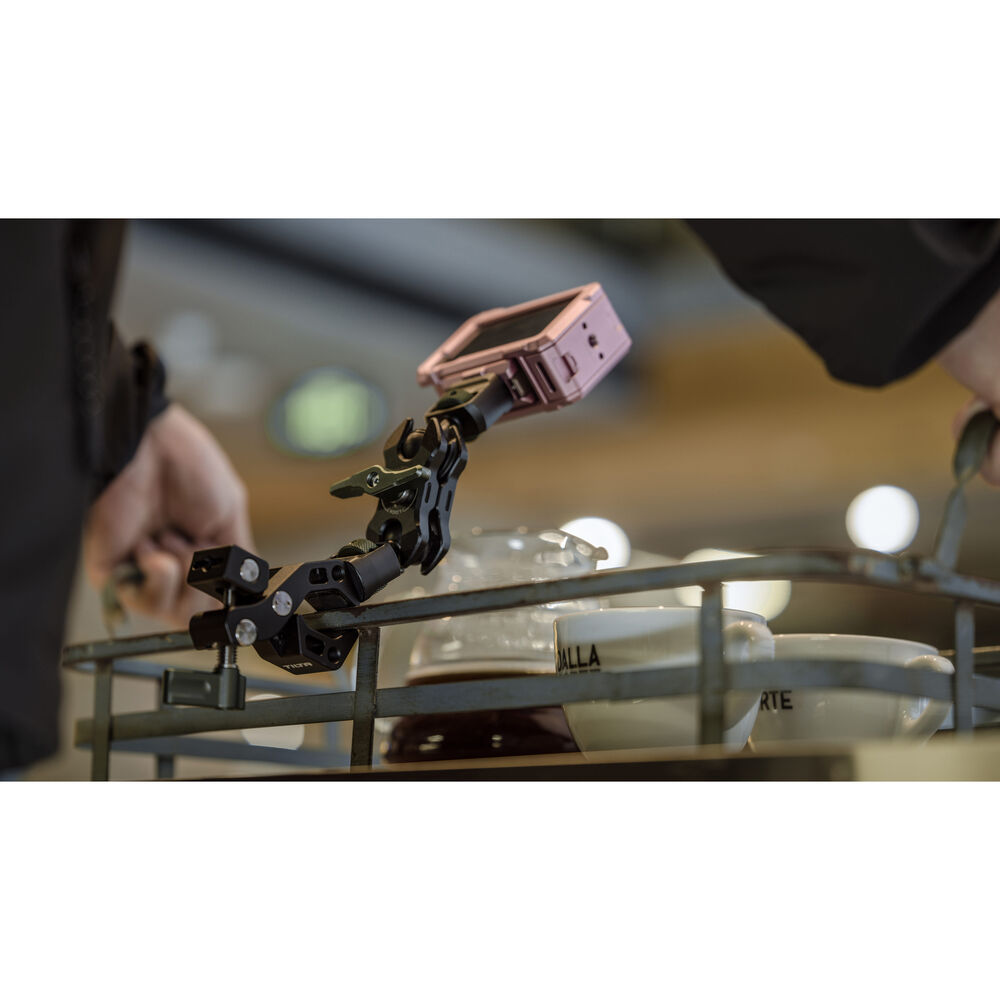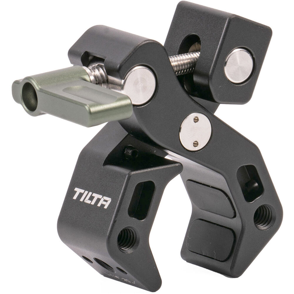 Mount an accessory onto a rod, stand, or pipe with this black Accessory Mounting Clamp from Tilta. The durable clamp is made from durable aluminum and it can clamp around a pipe measuring 0.5 to 1.2" in diameter and secures using a locking lever.