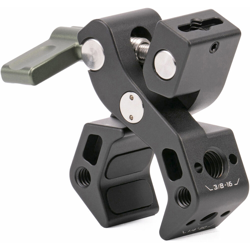 It can support accessories weighing up to 6.6 lb and provides 1/4"-20 and 3/8"-16 anti-twist threads and standard 1/4"-20 threads for a variety of accessories like a light, microphone, or transmitter. The interior of the clamp features soft padding to enhance grip and prevent scratching.