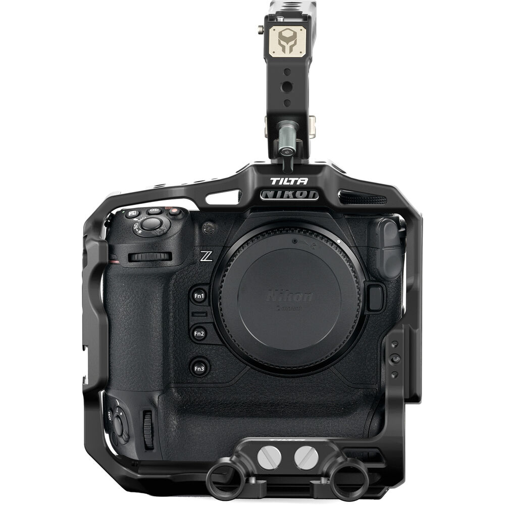 Protect your Nikon Z9 camera and add a variety of accessories with this black Full Camera Cage from Tilta. The durable aluminum cage is designed to fit the Nikon Z9, and the camera mounts onto the cage using a 1/4"-20 anti-twist screw.