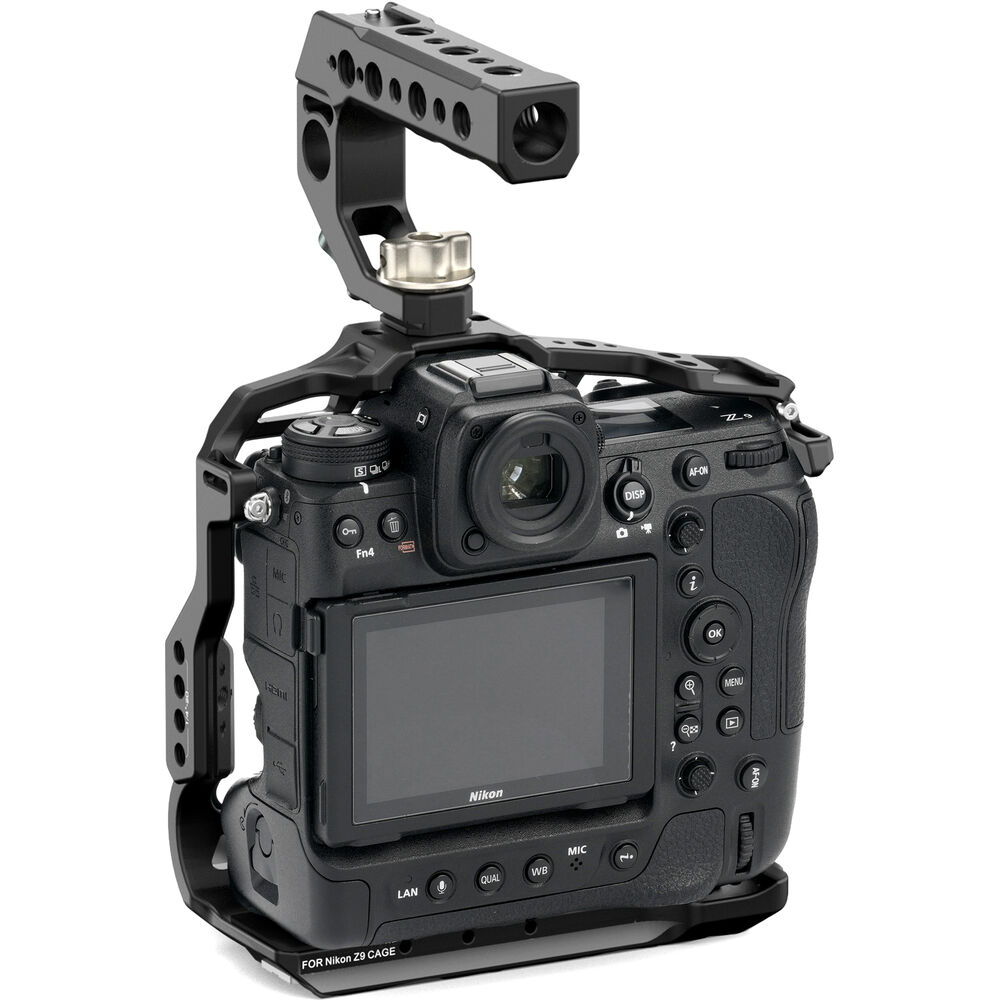 Protect your Nikon Z9 camera and add a variety of accessories with this black Basic Camera Cage Kit from Tilta. The kit includes a formfitting camera cage, a quick release top handle, and a 15mm LWS rod holder attachment.