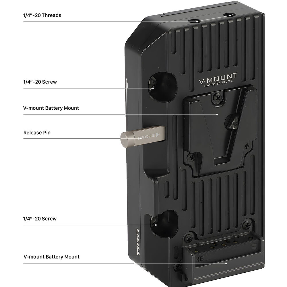 Power your DJI High-Bright Remote Monitor using a professional, long-life battery with this V-mount Battery Plate from Tilta. The plate mounts onto the monitor using 1/4"-20 screws and provides a secure, quick release mount for a separately available V-mount battery. The lightweight, compact plate is made from durable aluminum.