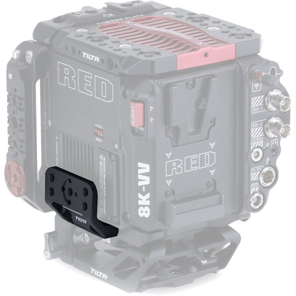 Add this Bottom Mounting Plate to your Tilta RED V-RAPTOR Full Camera Cage to provide an additional mounting option for the advanced I/O module. Four 1/4"-20 mounting threads and one 1/4"-20 thread with locating pins allow for additional accessory compatibility.
