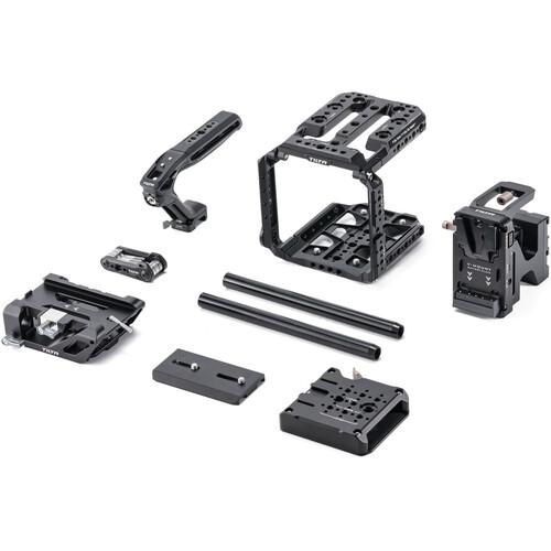 Mount accessories and add mounting options to your Blackmagic Design PYXIS 6K or PYXIS 12K cinema camera with the black Full Camera Cage from Tilta. The modular cage is made up of different components that can be added and removed as needed, including left/right side arm panels, a bottom plate, a top plate, and a side SSD plate that secure directly onto the camera. The components provide an integrated shoe mount, NATO rails, an ARRI-style rosette, 1/4"-20 threads, and 3/8"-16 anti-twist threads.