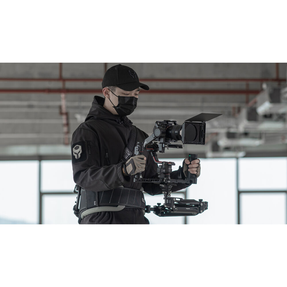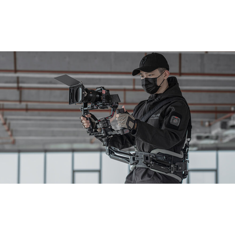 The Float Dual-Handle Gimbal Support System from Tilta is a variation of the original Tilta Float. It is modular, easy to assemble, and designed for increased stability and comfort during operation. Specifically tailored to support the dual-handle power supply bracket for the DJI RS2, the unit allows you to power your RS2 using a Gold or V-mount battery while providing multiple mounting options for accessories.