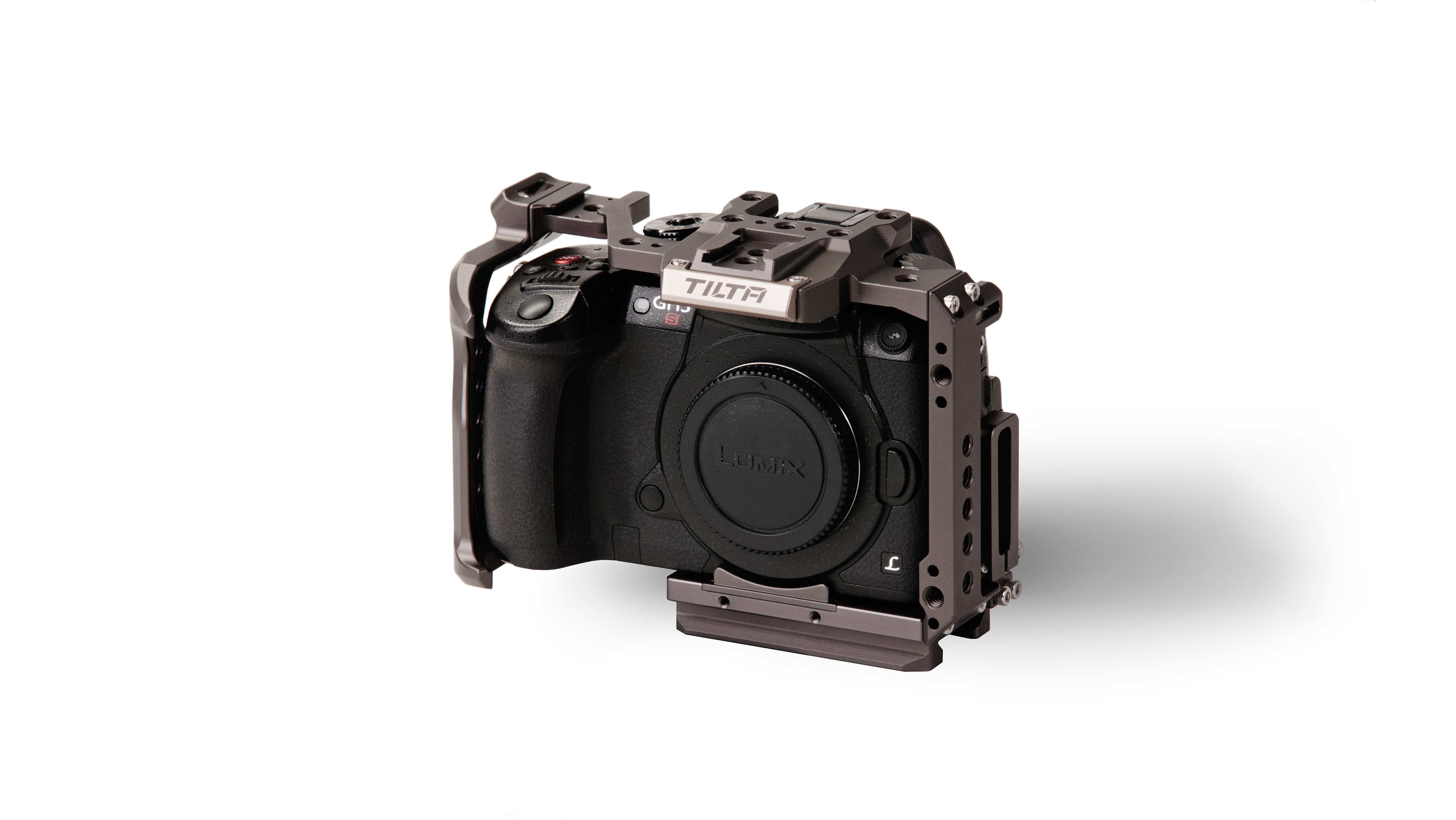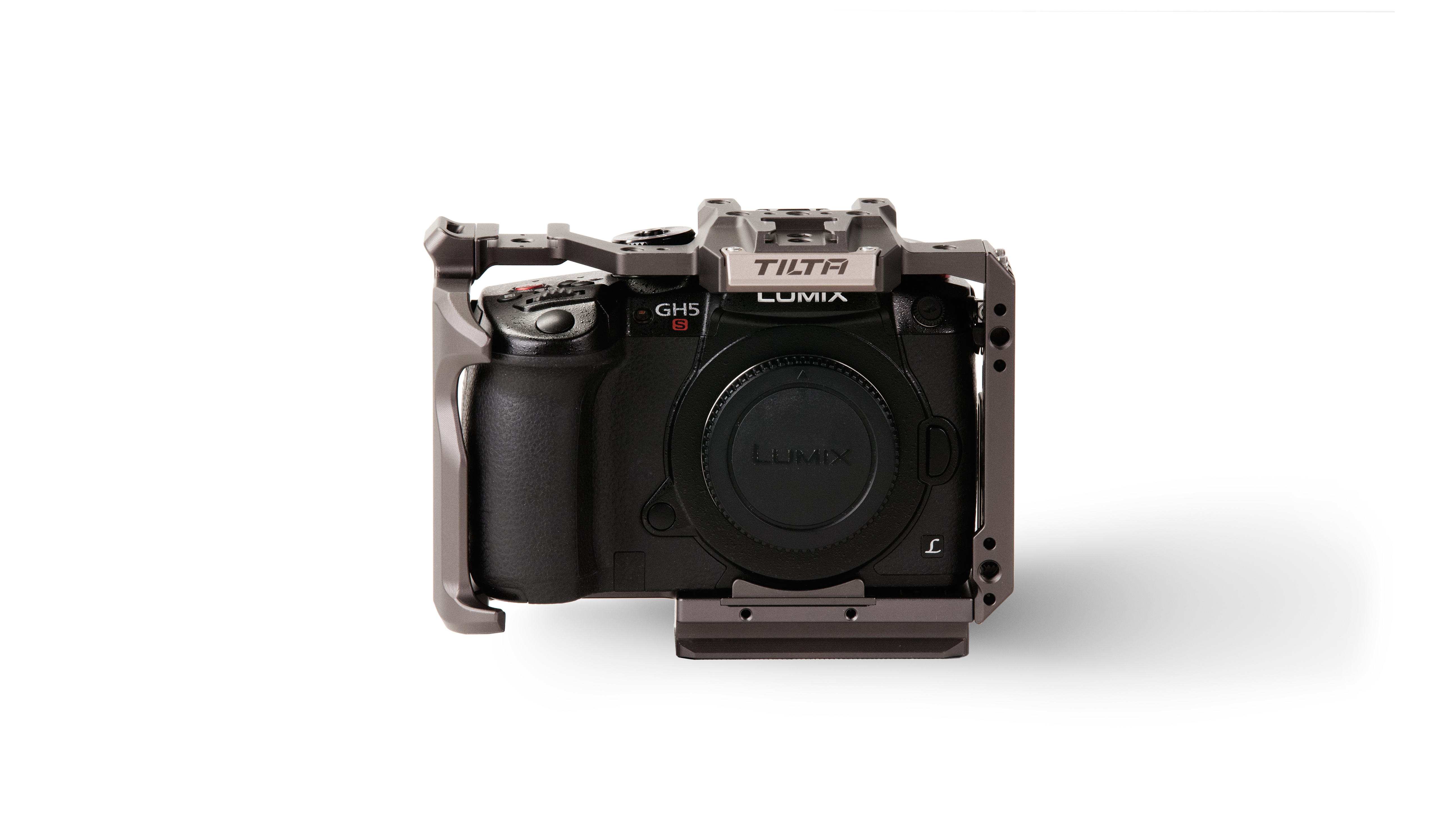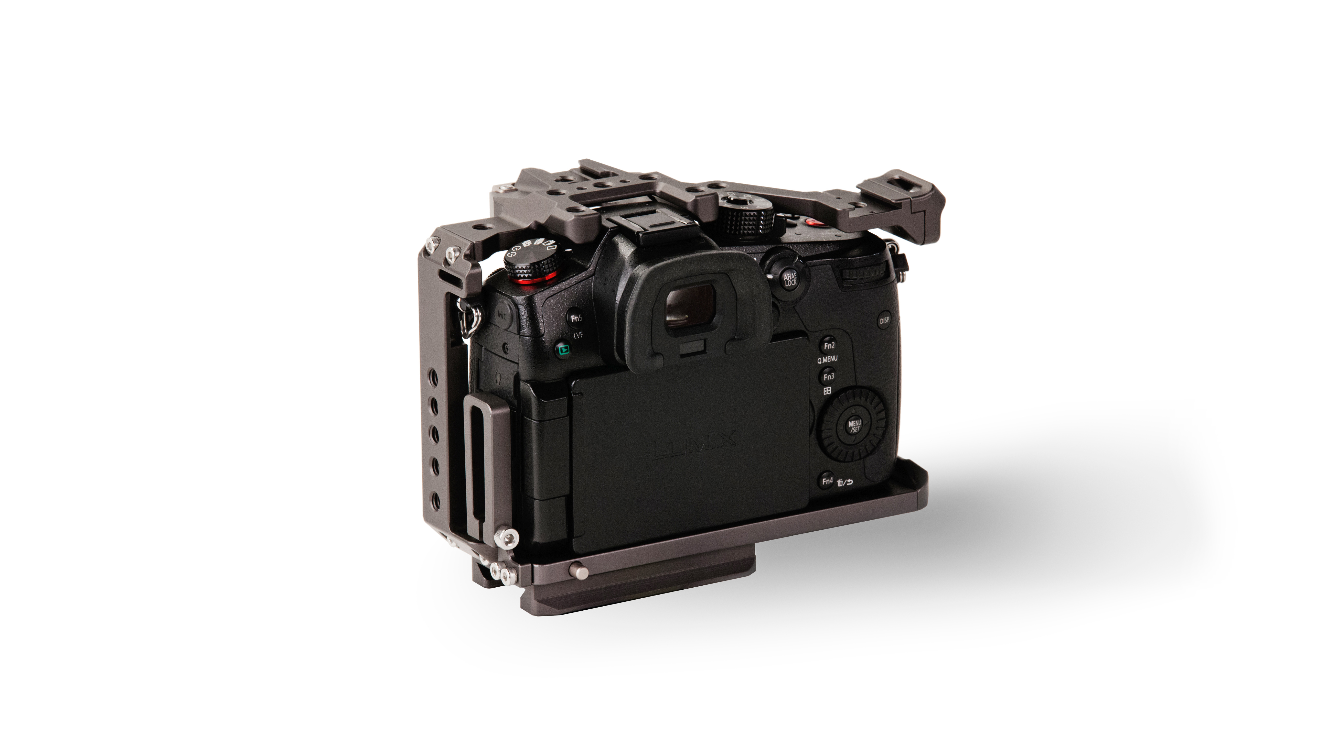 This “full” camera cage provides complete protective armor for the Panasonic GH4, GH5, and GH5S cameras.