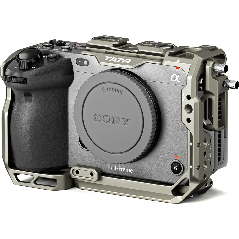 Add protection and accessories to your Sony FX3 or FX30 digital cinema camera with this lightweight and modular Camera Cage V2 from Tilta. This updated model offers the option of full cage protection or a lighter-weight half cage suitable for gimbal use by removing its side L-bracket. The titanium gray aluminum cage maintains access to the camera's controls and features a removable NATO top plate that enables the use of the original XLR top handle or another handle.
