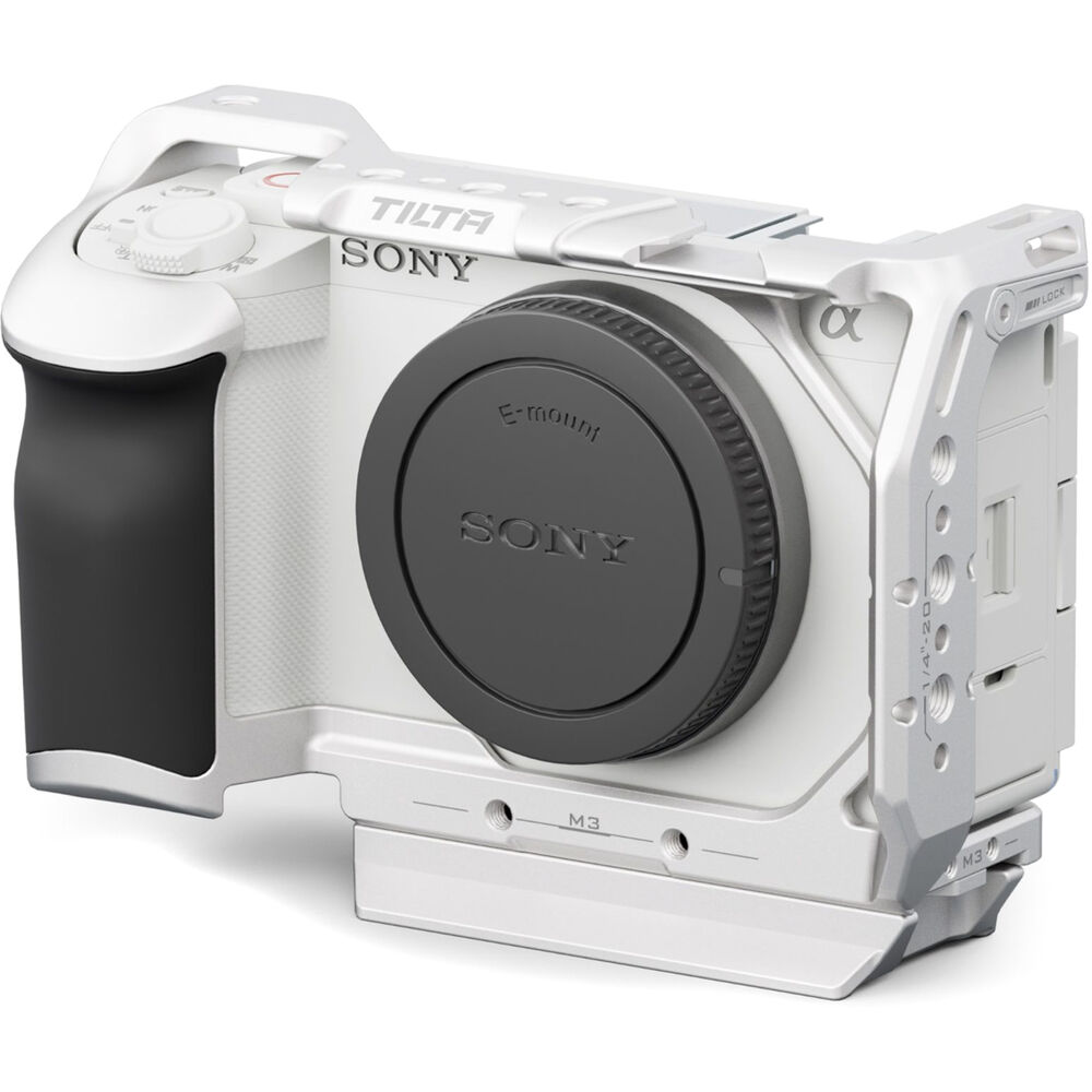 Designed to fit your Sony ZV-E1, this silver Tilta Full Camera Cage offers multiple mounting points, additional protection, and both portrait and landscape shooting, all in one cage design. Included with the cage is an Arca-type plate which can be attached to either the bottom or the side to support native switching between horizontal and vertical shooting orientations. The cage maintains access to the camera's ports and controls while adding multiple 1/4"-20 anti-twist threads throughout to attach additional accessories.