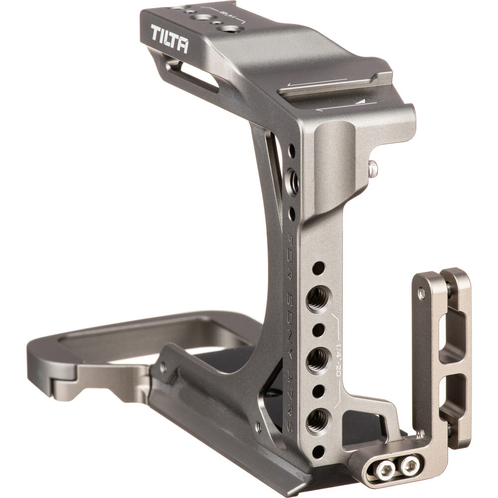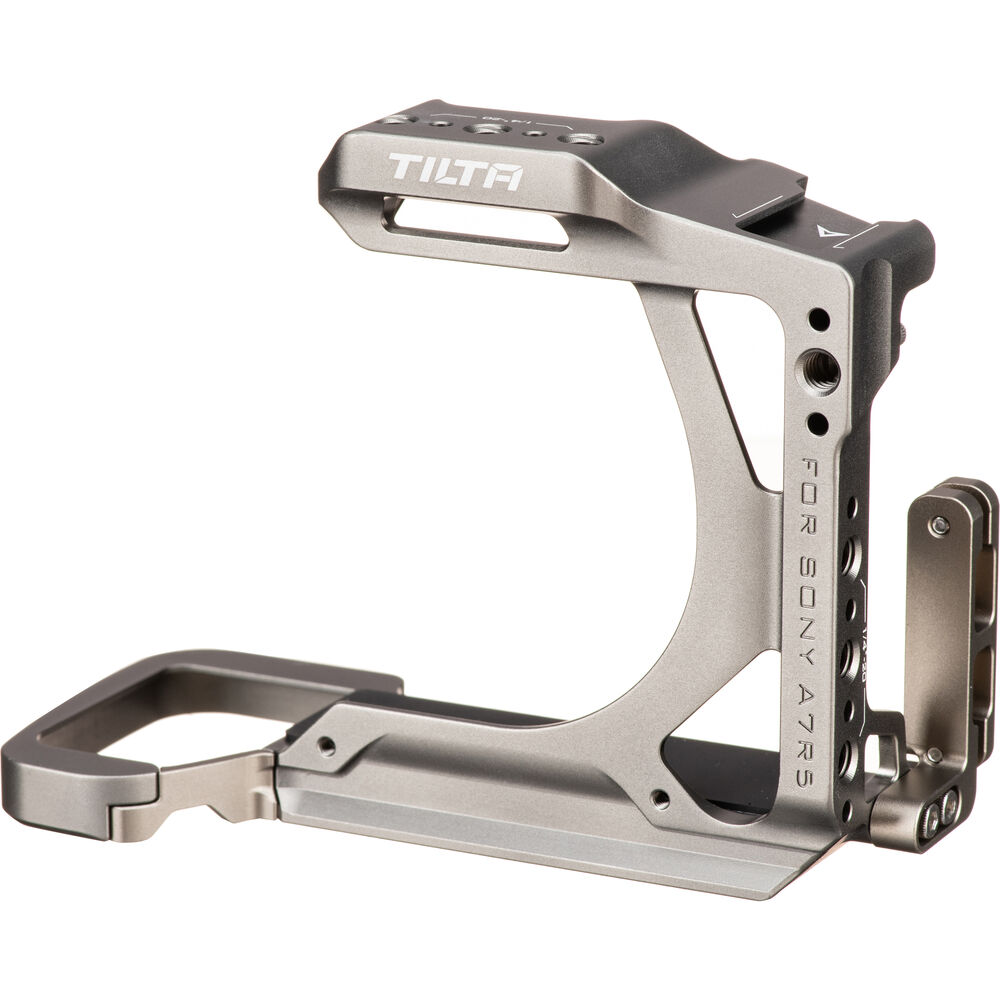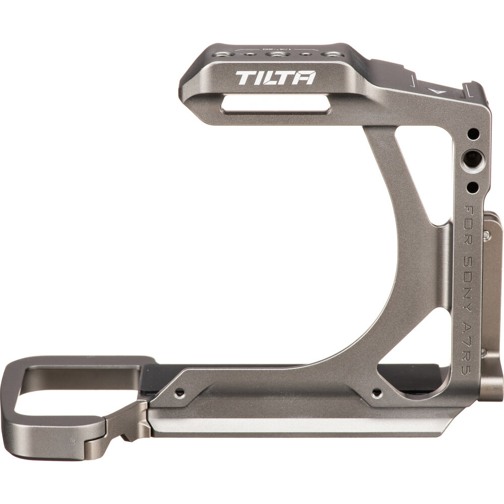 Protect your camera and expand your accessory mounting options with this titanium gray Half Camera Cage for Sony a7R V from Tilta. The lightweight and compact camera cage is specifically designed and form-fitted for the Sony a7R V and features multiple 1/4"-20 accessory mounting threads with locating points, as well as a single cold shoe receiver and an M2.5 camera mounting screw.