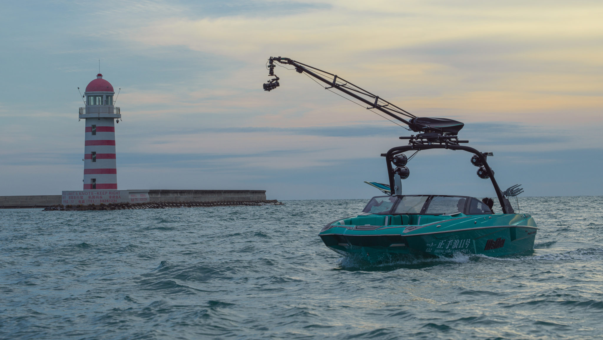 Arm length is 152in / 387cm, max height is 177in / 450cm