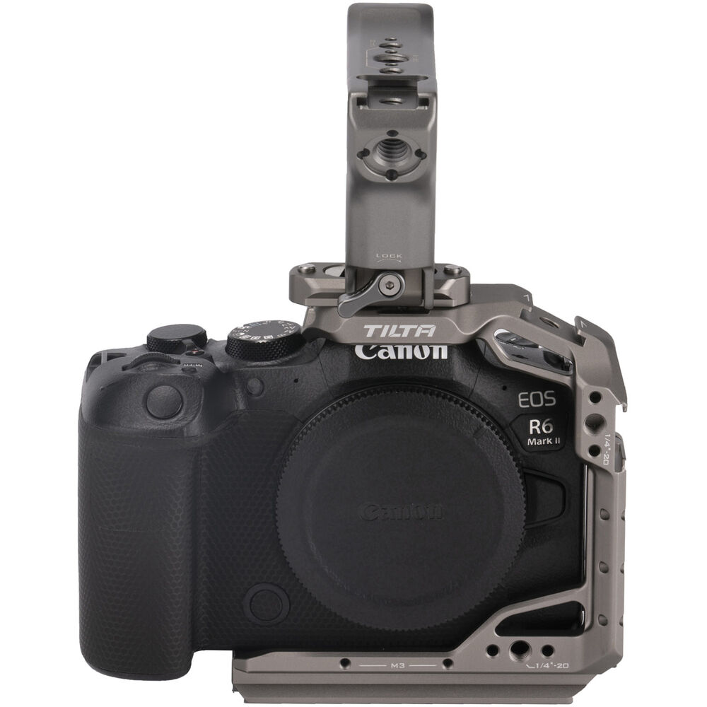 Add protection, handheld operation, and accessory mounting to your Canon R6 Mark II mirrorless camera with this titanium gray Lightweight Cage Kit from Tilta. The kit includes a dedicated, formfitting camera half cage, a compact NATO top handle, and a 0.7" NATO rail adapter. Read more below about each item in this kit.