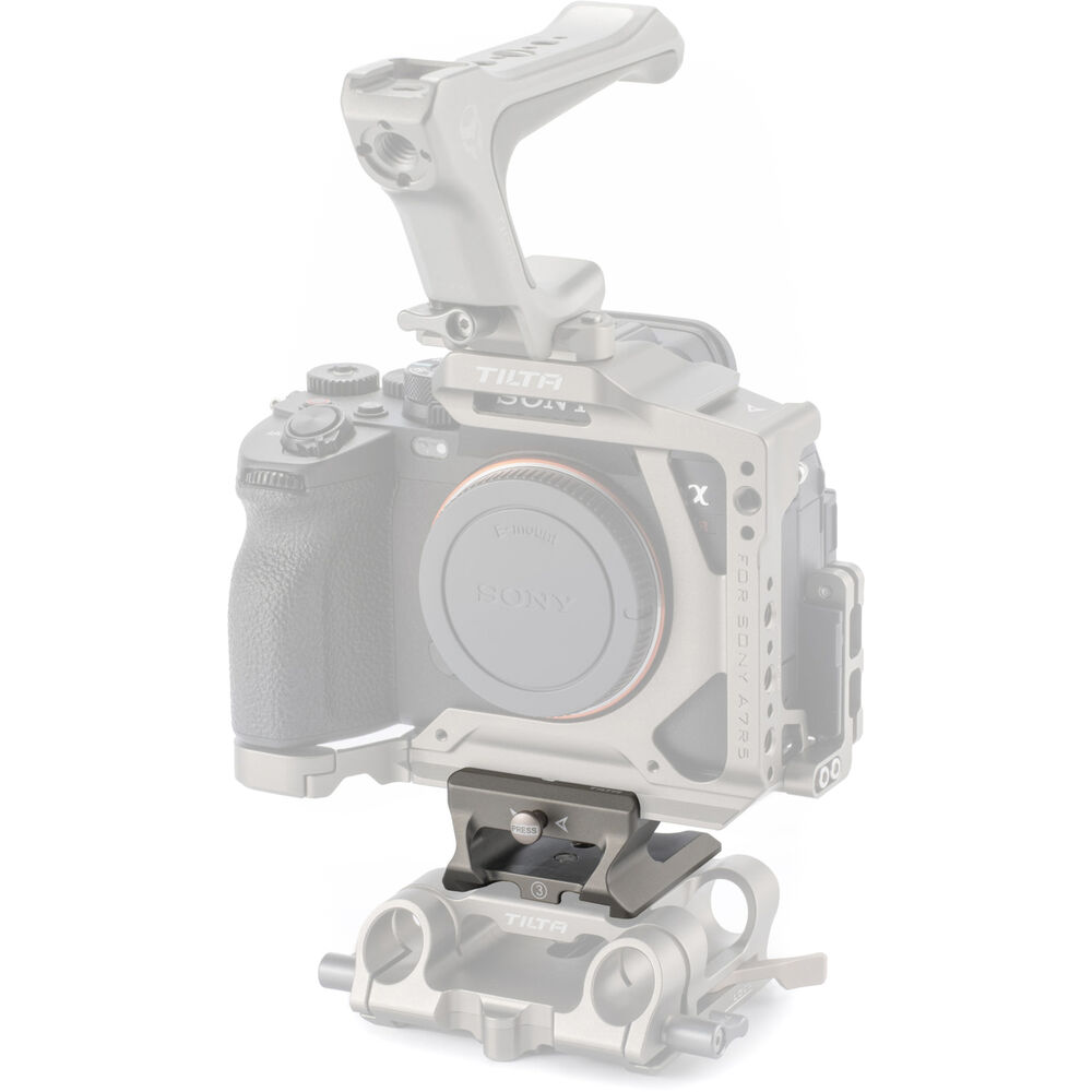 Quickly switch between your DJI Ronin-S or other gimbal system and your baseplate system using this LWS Baseplate Adapter Type III from Tilta. This titanium gray adapter plate is made from durable aluminum and steel, and it sits between your baseplate and your camera cage. The top of the plate features an Arca-type receiver for Tilta camera cages and most third-party plates, and the bottom features both 1/4"-20 mounting threads and a Manfrotto-style plate that works with most Manfrotto-style receivers.