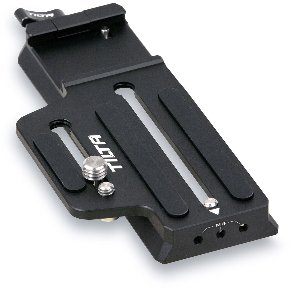 Three M4 mounting holes in front of the plate allow you to add optional accessories, and the plate comes with 1/4"-20 and 3/8"-16 tie-down screws. The perpendicular slot found on your original plate is maintained on this extended plate, allowing for vertical mounting of your camera on your gimbal. Made from aluminum alloy, the plate is lightweight, durable, and able to stand up to the rigors of the production day.