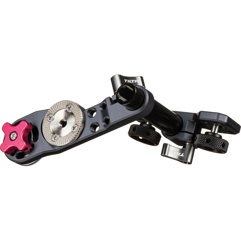 The other end of the bracket features a 15mm rod clamp that attaches to a 3.9" standard 15mm rod. The monitor plate attaches to the other end of the rod with its own 15mm rod clamp, and your monitor secures to the top of the plate with a thumbscrew, allowing easy tilt adjustment. The bracket also features one female rosette and four 1/4"-20 threads for attaching other accessories.