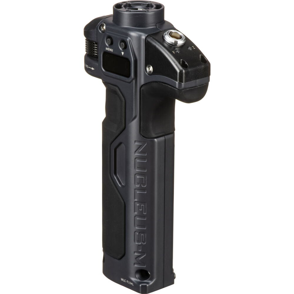 Handgrip features include three knob-rotation settings, optional adapters for either bar- or ring-based gimbals, LED indicators, and an LCD display. An optional thumb joystick is available separately for the left handgrip. Powered by two 18650 lithium-ion batteries (not included), the handgrips can maintain a single charge for up to two days. As part of the Nucleus-M system, the Wireless Handgrip provides a run/stop function for select cameras.