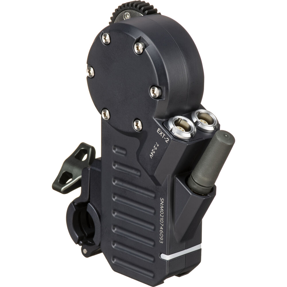 The compact Tilta Nucleus-M FIZ Lens Control Motor features an integrated motor drive, eliminating the space of a separate drive box and enabling a quicker setup. Power the motor using a separately available D-Tap cable and power source, or daisy-chain to another motor using a 7-pin cable.