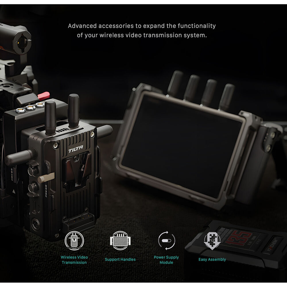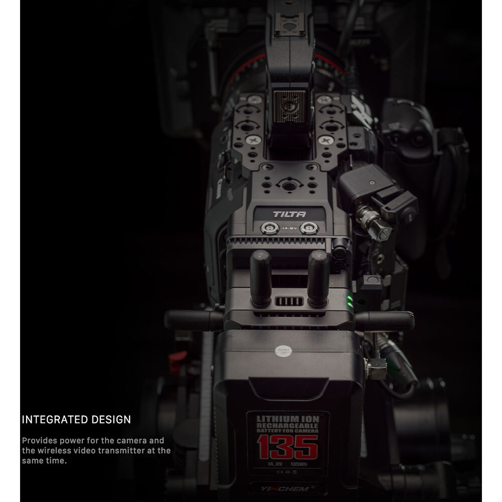 Power your DJI Video Transmitter along with your camera with this V-mount Power Supply Module from Tilta. The power module consists of a battery plate and a camera-side plate that mount on either side of the DJI Video Transmitter. The V-mount camera-side plate mounts quickly onto the camera, and the V-mount battery plate provides the ability to power the transmitter and the camera simultaneously with a long-lasting, separately available V-mount battery.