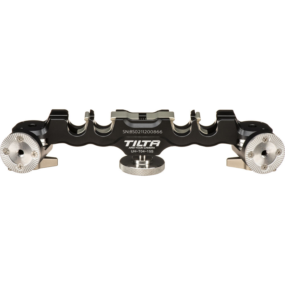 The Tilta Quick Release Handgrip Bridge enables you to add rosette-based handgrips to your camera rig using 15mm LWS rods. Clamp the Handgrip Bridge on a pair of rods and fasten using the thumbscrew.