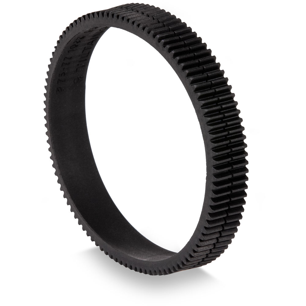 Tilta's 78 to 80mm Seamless Focus Gear Ring allows you to add 0.8 MOD gears to a compatible lens for use with cine follow focuses. This 78 to 80mm size fits virtually all lenses of the same outer diameter. The seamless version is designed with an improvement over Tilta's earlier gear rings in that it's fully closed and requires no screws in order to be secured to the lens. As a result, it attaches to the lens more easily and provides evenly distributed pressure while ensuring zero drifting and accurate focus. It's made of durable, flexible rubber, attaches firmly, and works silent and smooth along 360° of rotation. The MOD rating and 78 to 80mm diameter size are etched out on the inside of the ring.