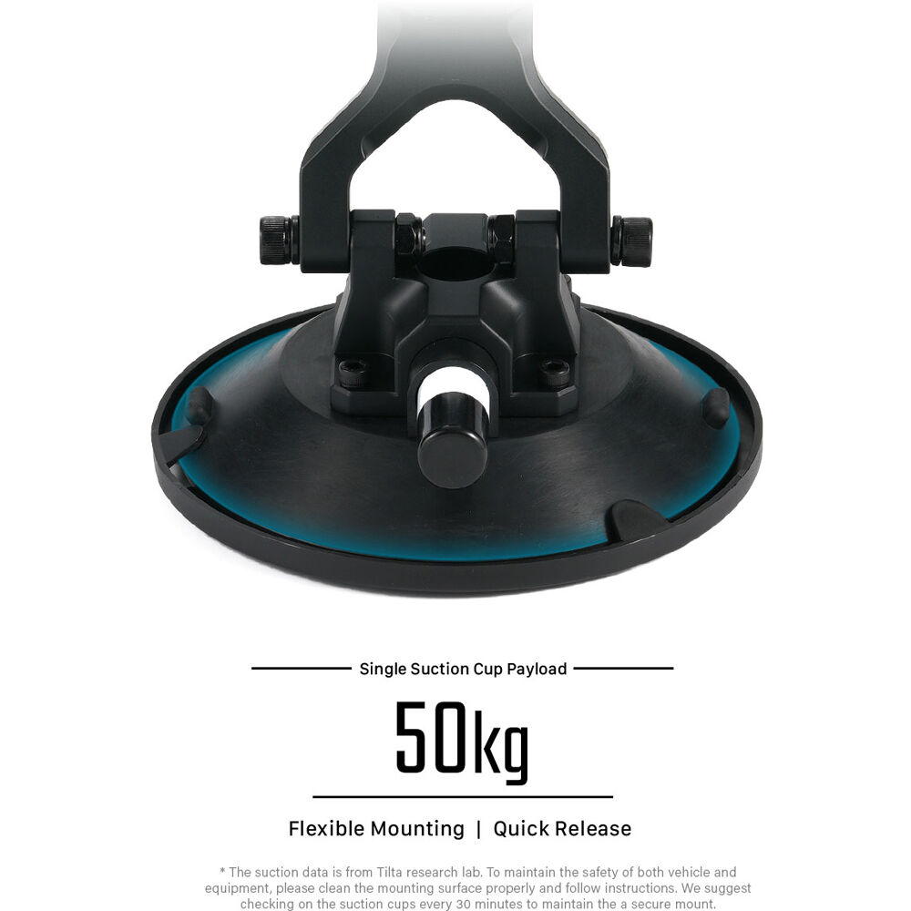 The Speed Rail Mounting Suction Cup Kit from Tilta is a set of four high-capacity cups, each designed with sturdy aluminum, stainless steel, and rubber to sustain payloads up to 110 lb. These work perfectly with the Tilta Speed Rail Car Mounting Kit but are compatible with any 50mm speed rail. When used with other Suction Cup units, a very stable foundation for mounting shock-absorbing arms or other gear is established.