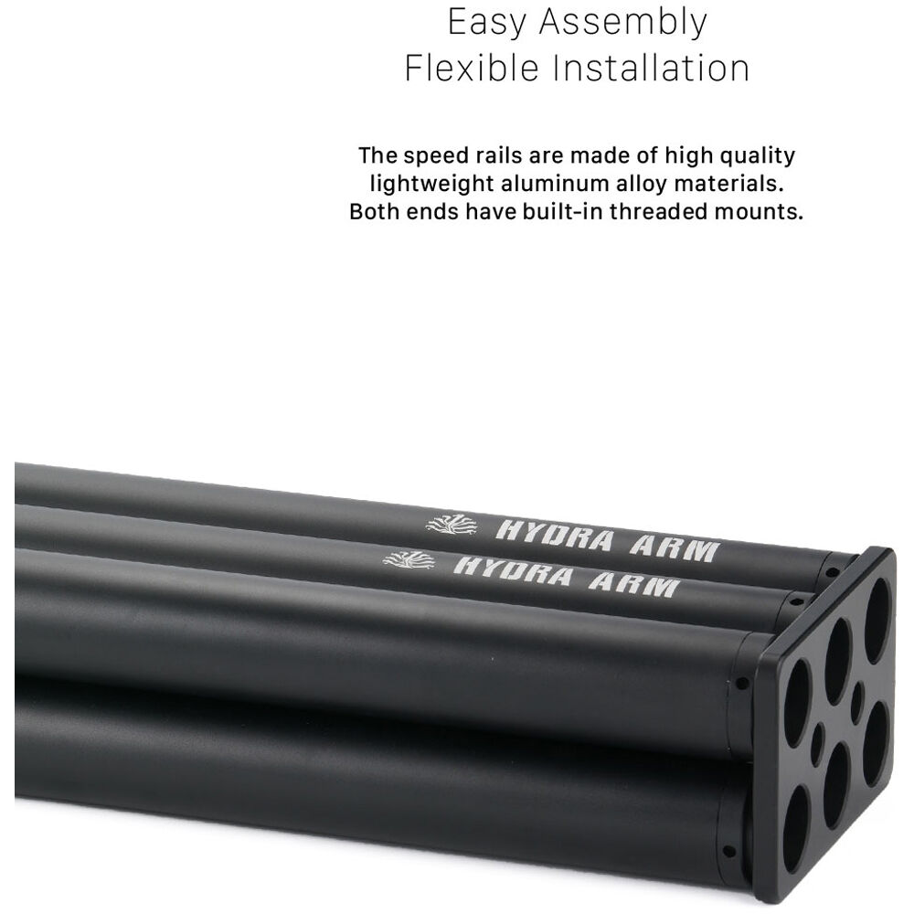 As the foundation for custom-build speed rail rigs, this Tilta Speed Rail Set features six pieces of 50mm speed rail in two different sizes designed to support multiple configurations for various shock-absorbing arms. The six speed rail pieces, which are compatible with the Hydra Predator Shock Absorbing Arm, may be interconnected to form longer pieces or can be used on their own for different types of rigging needs. The set is also a replacement for the one included in the Speed Rail Car Mounting Kit from Tilta.