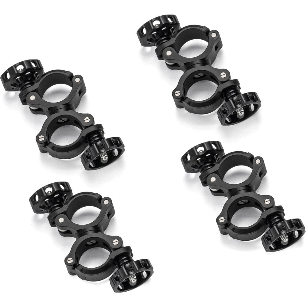 The Speed Rail Mounting Clamp Set from Tilta features four adjustable clamps designed to accommodate multiple configurations when using the 50mm speed rails of the Speed Rail Car Mounting Kit. This sturdy aluminum and stainless steel quick-assembly set simplifies the mounting process and can also be used to build larger rigs when used with optional Speed Rail and Suction Cup pieces.