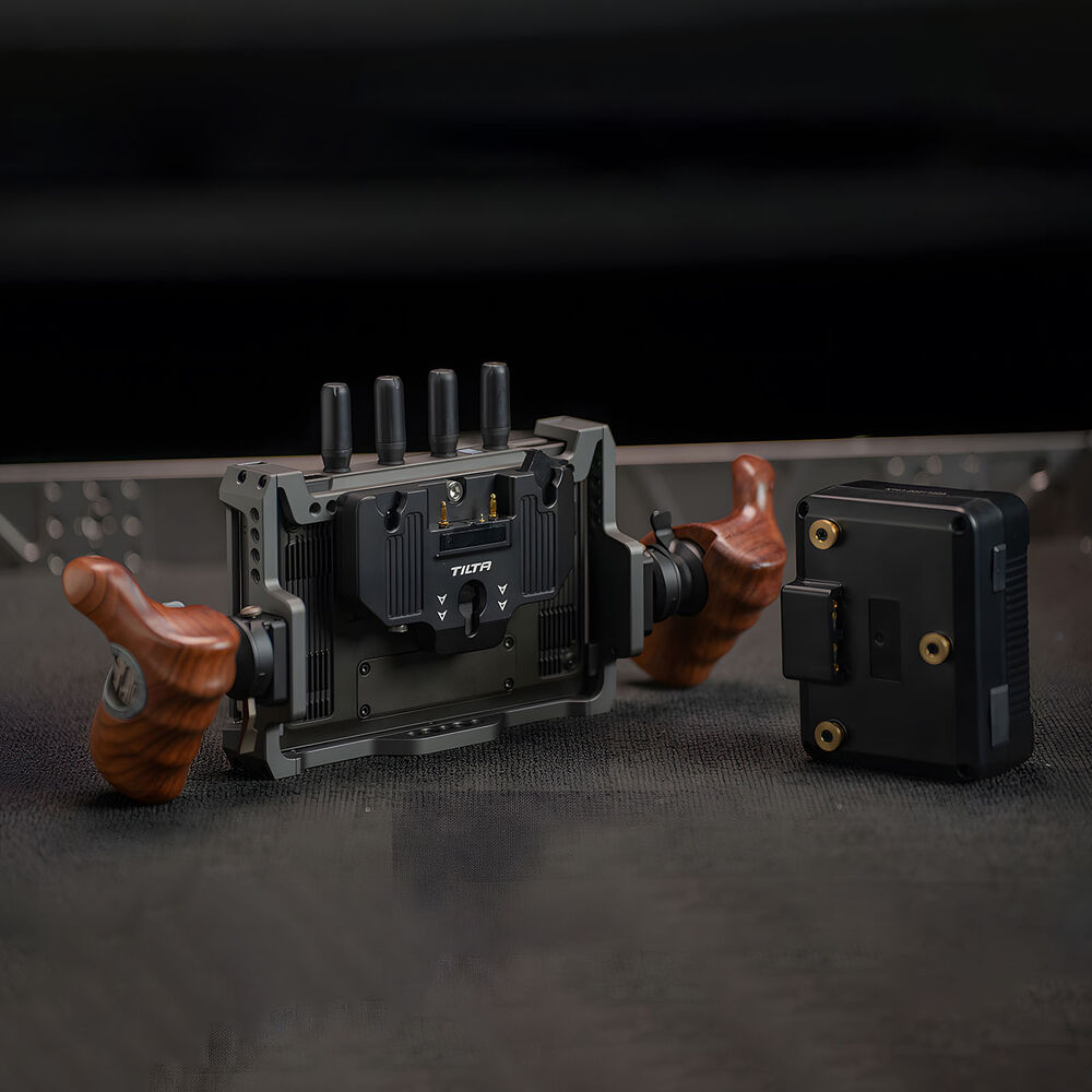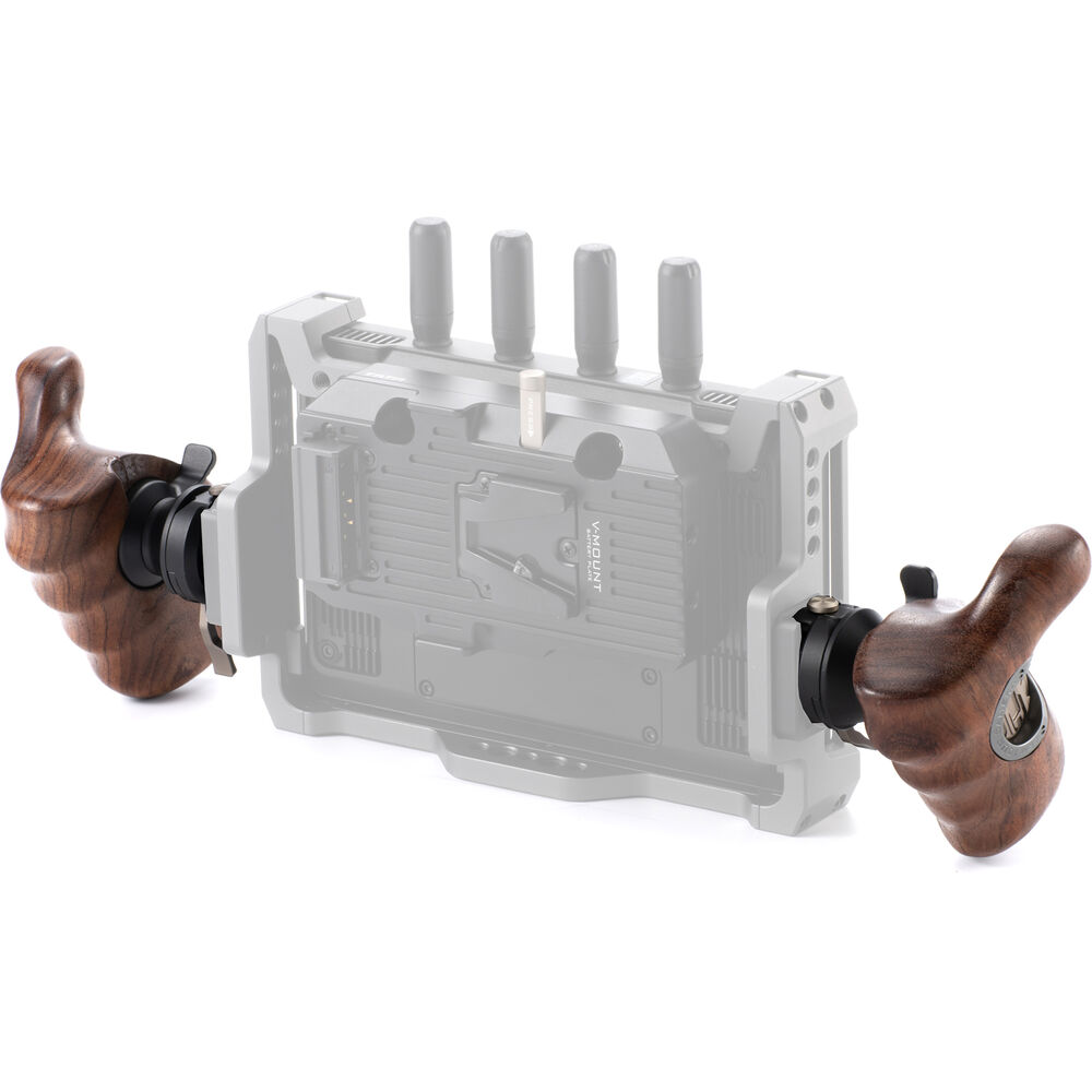 Add left and right handgrips to your DJI Ronin 4D or DJI High Bright Remote Monitor with this Tiltaing Advanced Side Wooden Handle Type IX Set from Tilta. The ergonomic wooden handles mount directly on either side of the 4D or Remote Monitor using the included proprietary mounting adapters.