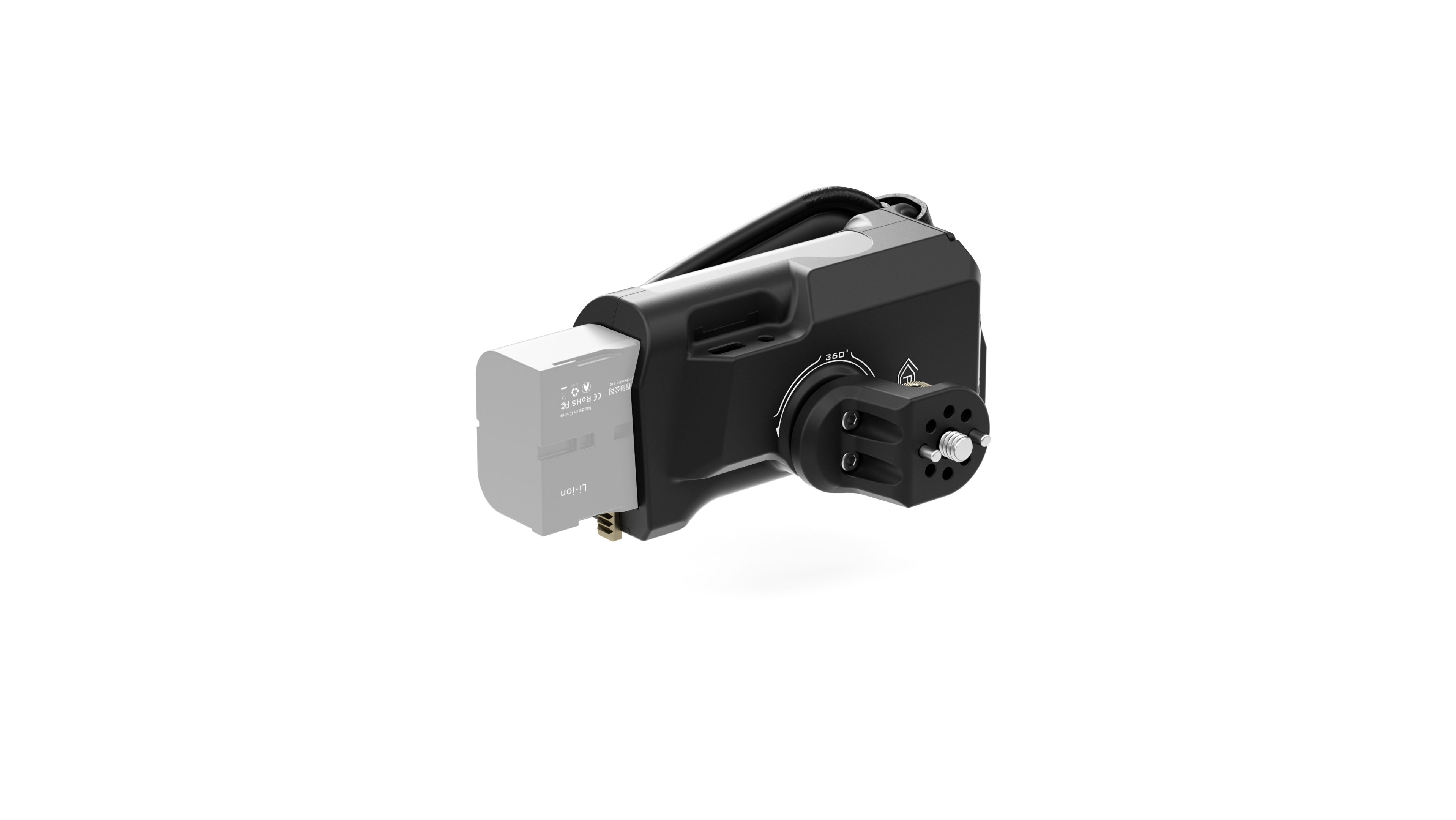 This advanced handle attaches to the left side of Tiltaing camera cages. A battery port on the bottom of the handle allows you to use a Sony F570 battery to power various accessories via the 8V USB-C and 12V DC power outputs.