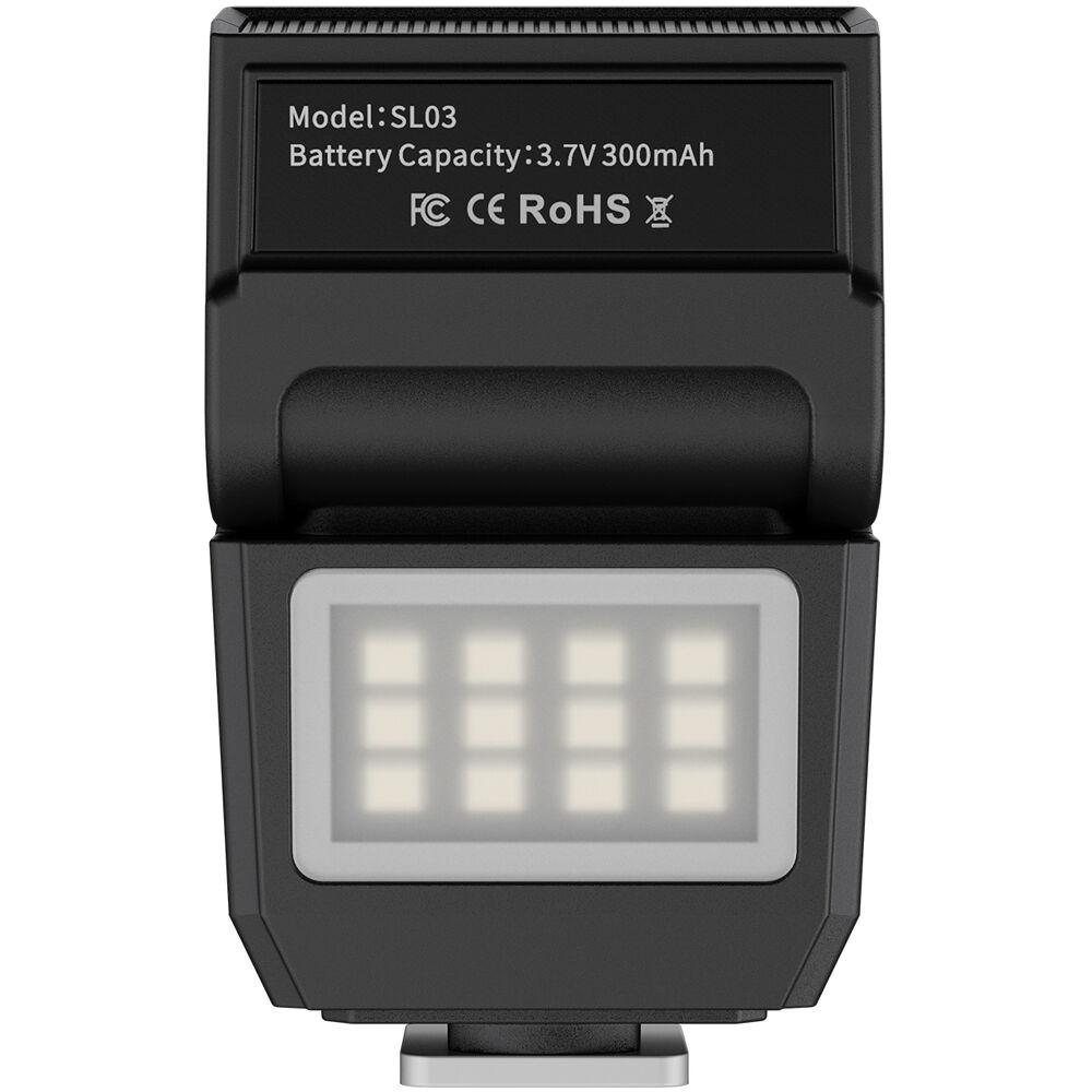 The SL03 Spark Lite Mini Camera Flash from Ulanzi fits in your pocket, providing a lightweight, portable on-camera flash and continuous light for your on-the-go photography needs. With a 300mAh USB-C rechargeable battery offering up to 500 full power flashes per charge, the flash features a universally compatible hot shoe mount, allowing it to be used with most major camera brands. It features both a flash and a constant light, which can be used separately or simultaneously to give a fill light and focus assist in low-light situations. The flash has four power levels, from 1/1 to 1/8, with a recycle time of 2.5 seconds at 1/1 and continuous lighting at 1/8. To change between direct light and a bounce light, the flash head can be tilted 90° vertically.