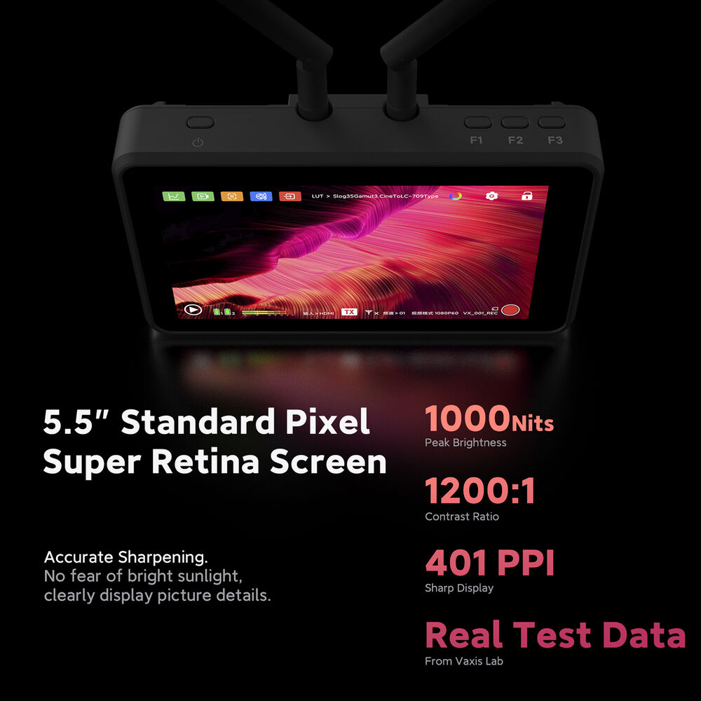 This Atom A5 Wireless Monitor Professional Package from Vaxis is a bundle of gear that features two Atom A5 monitors, antennas, screen protectors, an extendable tripod, a carrying case, and other accessories. With this bundle, you can use the two included monitors to transmit, receive, monitor, and record high-quality wireless video transmissions. The Atom A5 features a 5.5" touchscreen display that provides a sharp 1920 x 1080 resolution and 1000 cd/m² brightness.